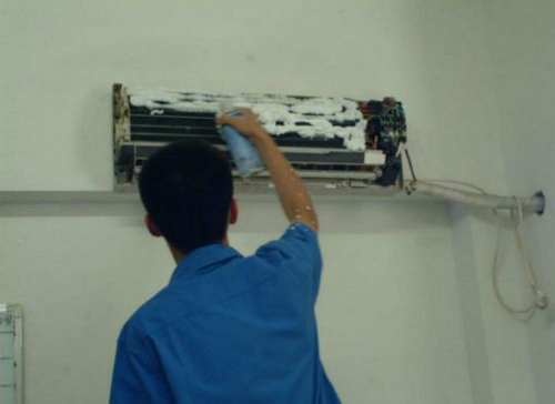 | 无极空调维修师傅给无极用户上门维修清洗空调。 |